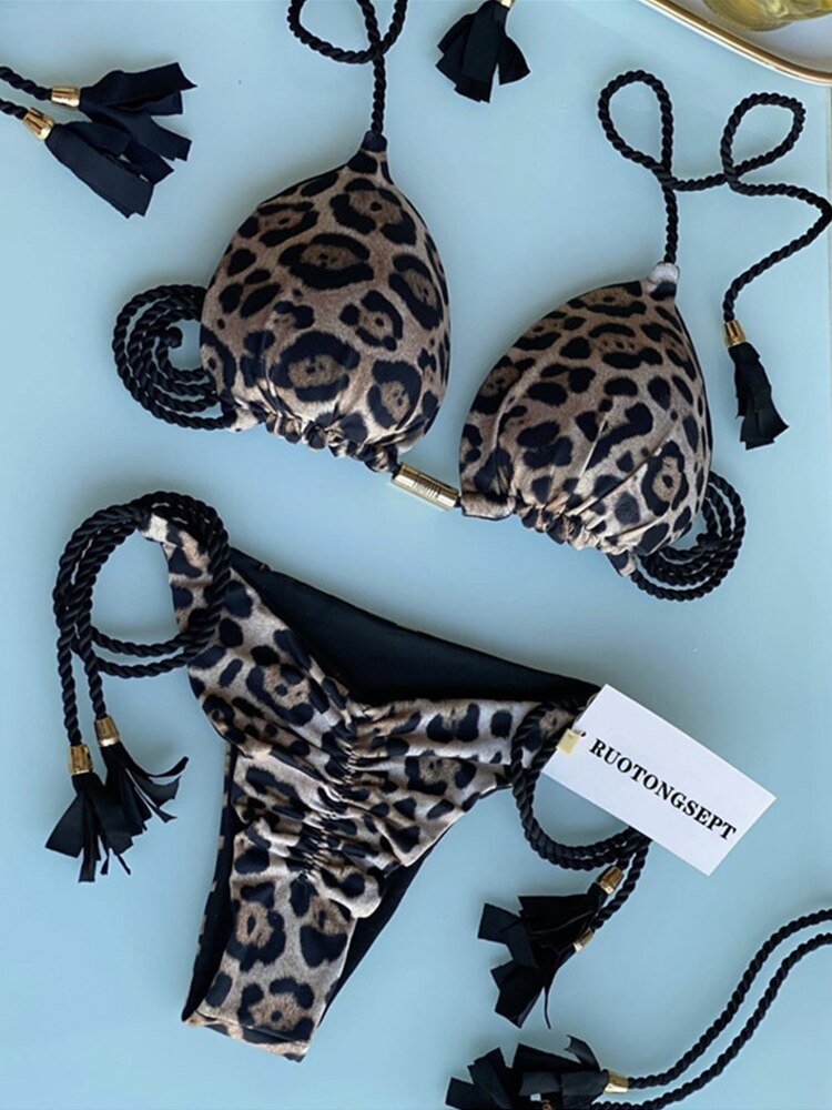 Biquini Cortininha com bojo de Onça Iris