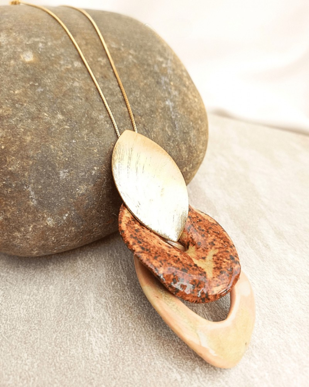 Colar Duplo Terra e Sol - Em Cerâmica Artesanal