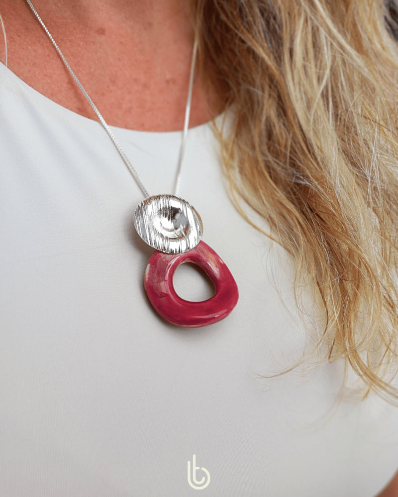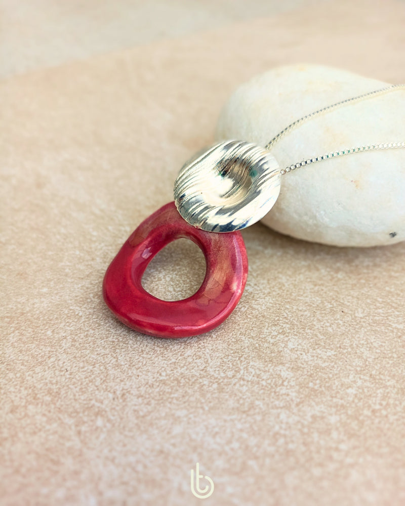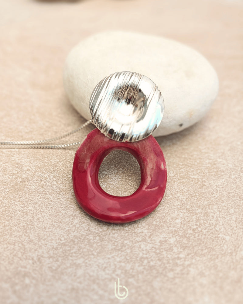 O Colar Rubi é uma peça de cerâmica que combina a intensidade do vermelho escuro com pequenas mesclas. Cada peça é cuidadosamente moldada e queimada para realçar as nuances ricas e vibrantes, criando um visual único e sofisticado.