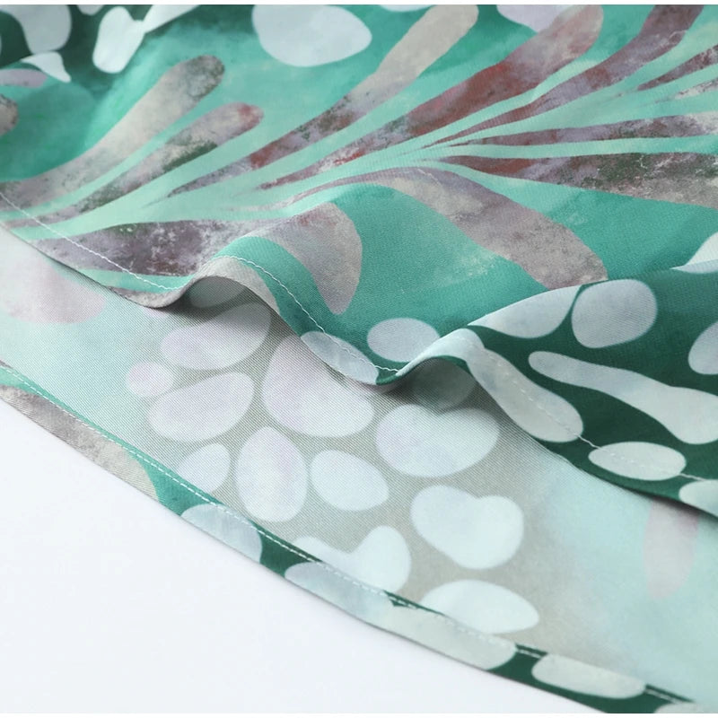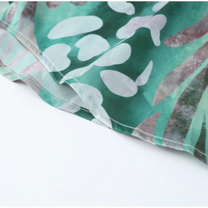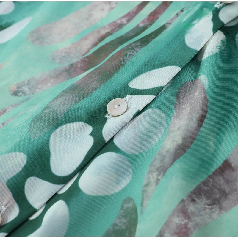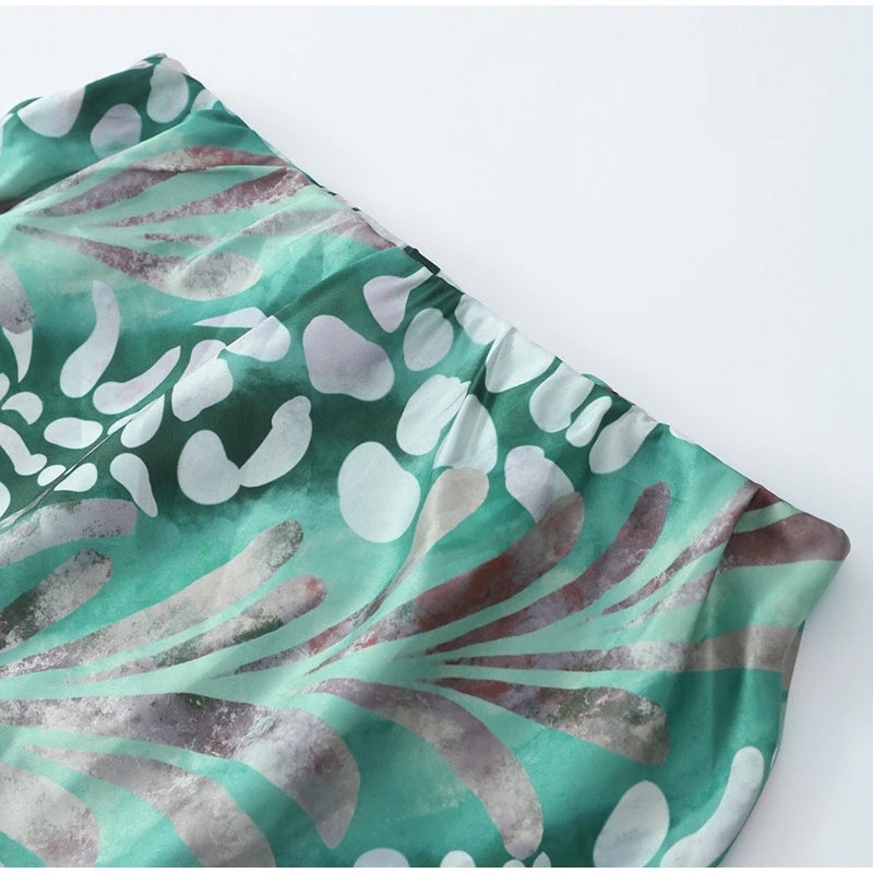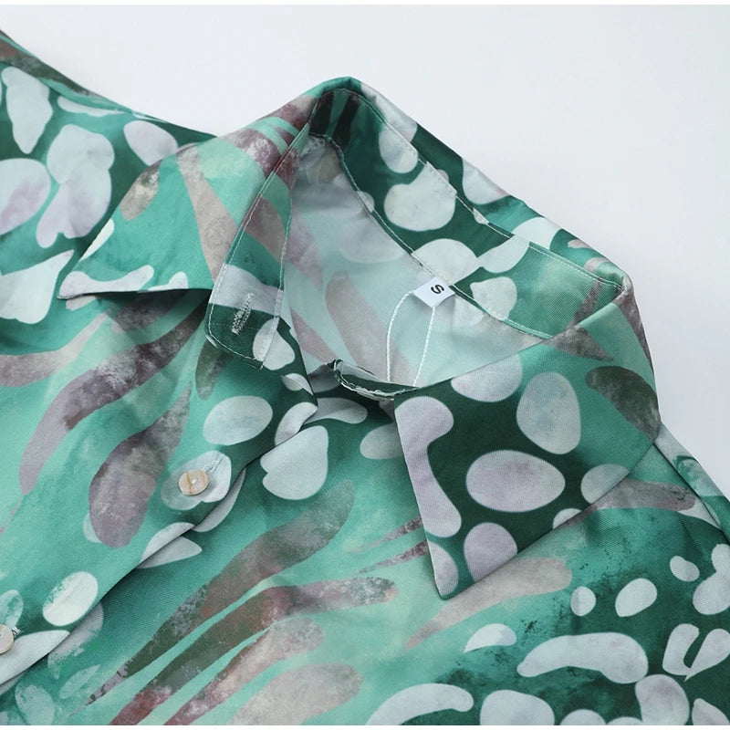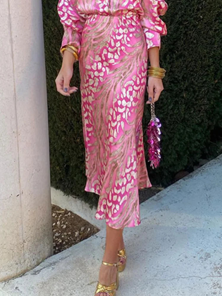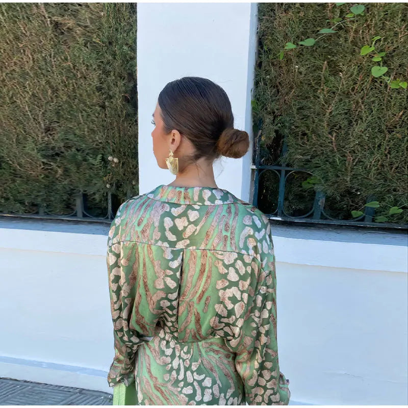 Conjunto composto de camisa com manga longa e saia midi com elástico na cintura.