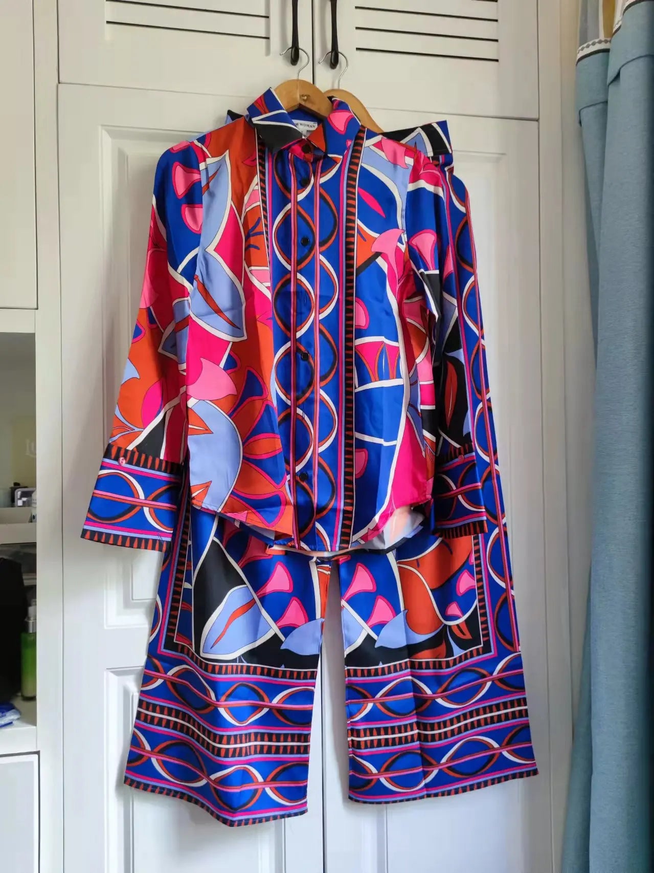 O Conjunto Elvira é a escolha ideal para mulheres que buscam elegância e sofisticação. Confeccionado em toque de seda, este conjunto apresenta uma estampa geométrica vibrante, combinando tons de rosa, azul e preto. Com um visual moderno e cheio de personalidade, o Conjunto Elvira é perfeito para diversas ocasiões, desde um evento casual até uma festa sofisticada.
