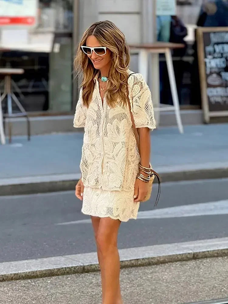 - Saia oca de malha: Um modelo único com texturas vazadas que garantem sofisticação e frescor.