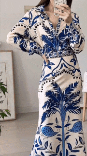 1 saia longa, cintura alta com fechamento por zíper e elástico.