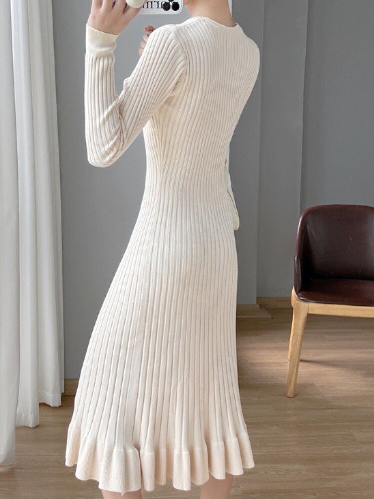 Vestido de lã midi, de tricô em lã com elastano.