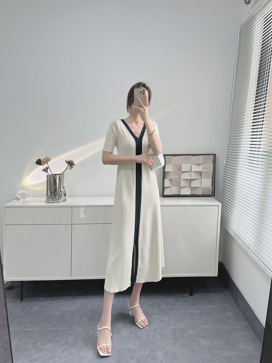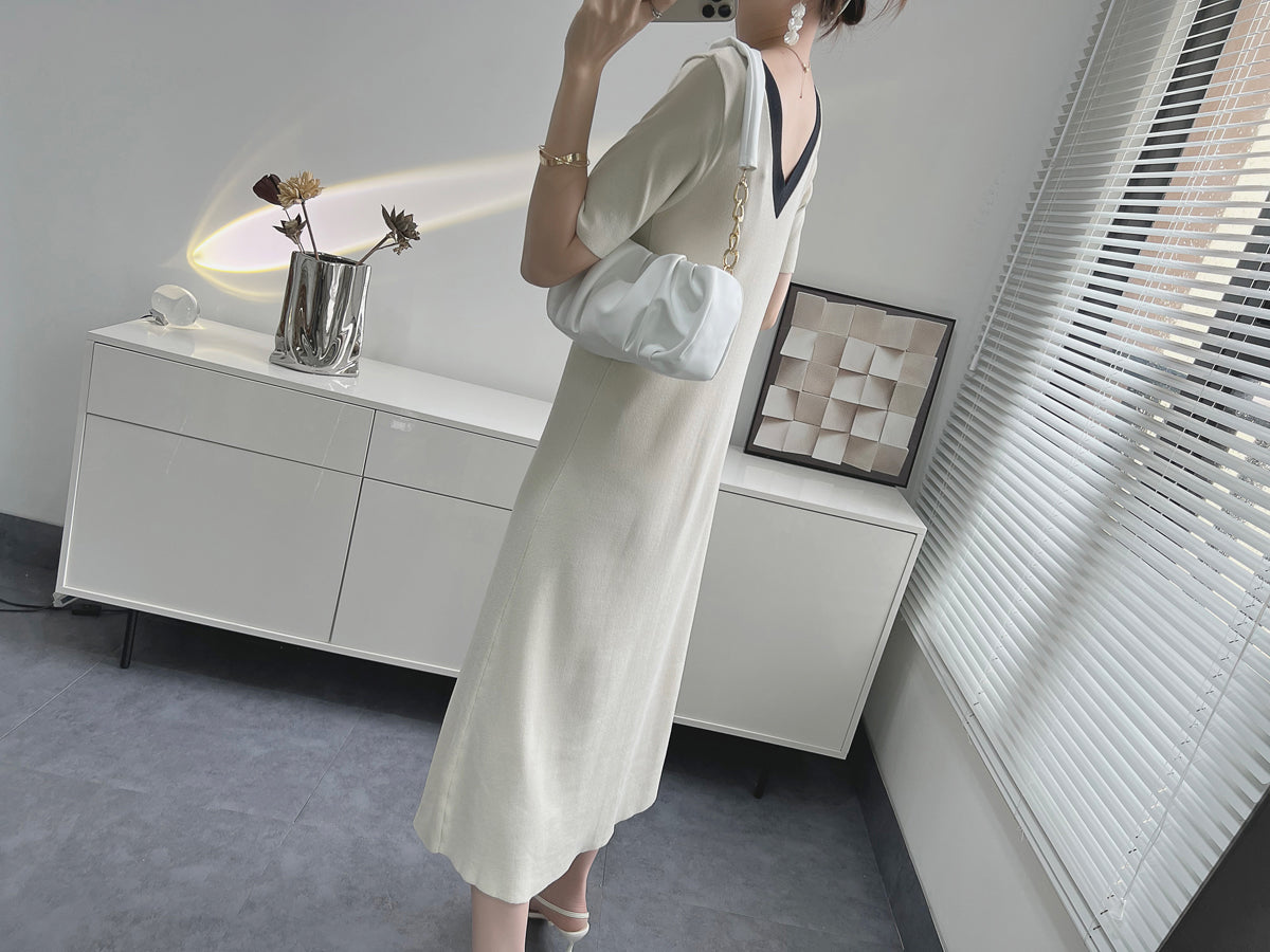 Vestido midi com gola V - Nápoles