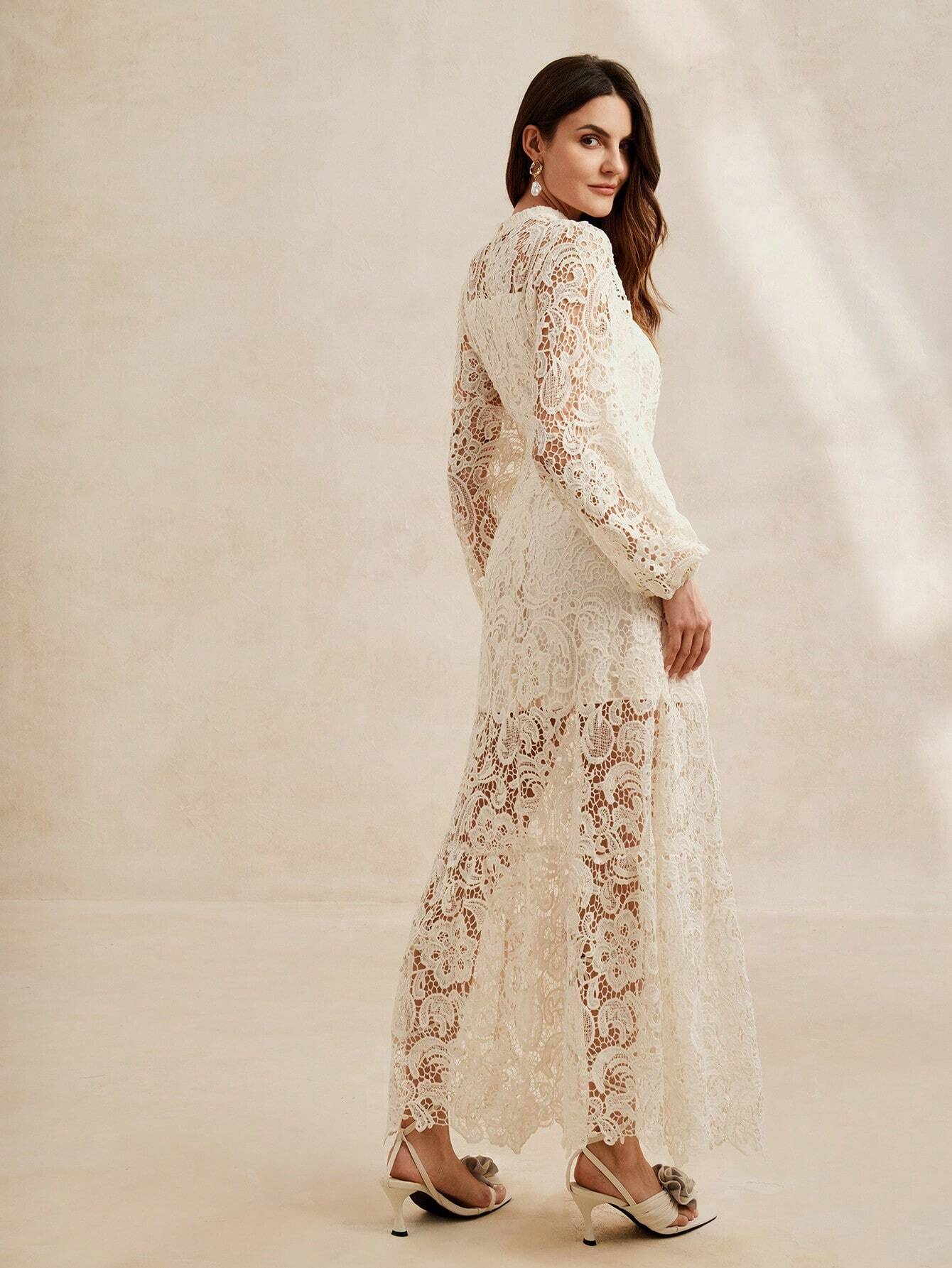 Apresentamos o Vestido Elegante Auroura, ideal para mulheres que desejam um toque de elegância e sofisticação. Com uma cor bege clássica e detalhes delicados em renda vazada, este vestido é perfeito para ocasiões especiais e eventos formais.